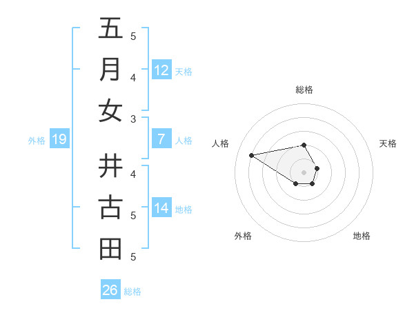五月女 井古田さんを姓名の画数から五運を鑑定