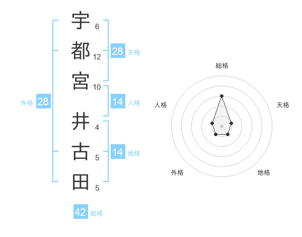 宇都宮 井古田さんの総格は42画の3点!