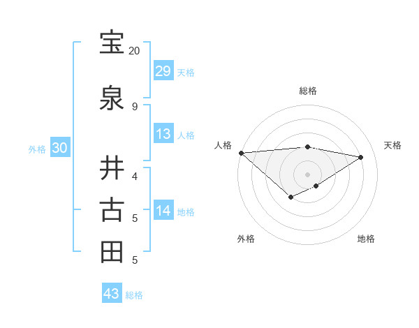 宝泉 井古田さんを姓名の画数から五運を鑑定