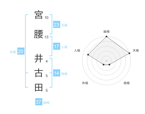 宮腰 井古田さんの総格は37画の5点!