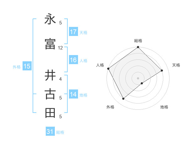 永富 井古田さんの総格は31画の5点!