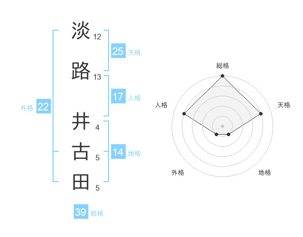 淡路 井古田さんを姓名の画数から五運を鑑定