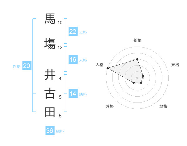 馬塲 井古田さんを姓名の画数から五運を鑑定