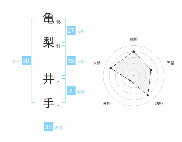 亀梨 井手さんを姓名の画数から五運を鑑定