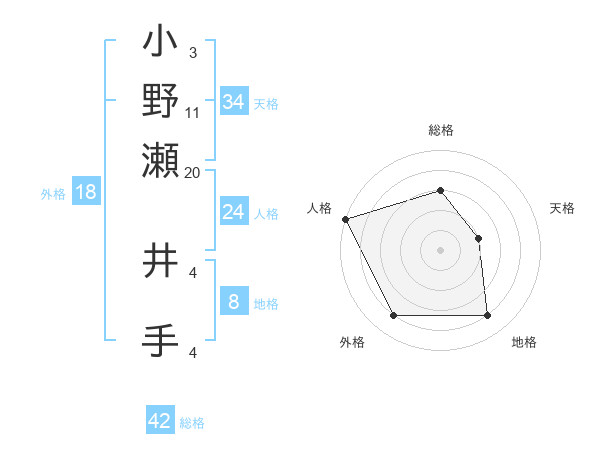小野瀬 井手さんを姓名の画数から五運を鑑定