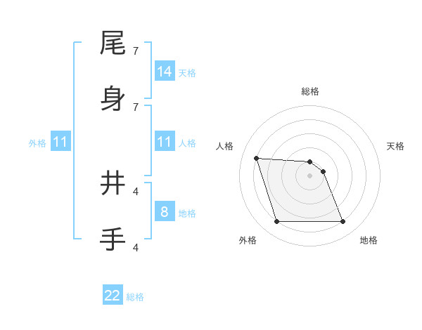尾身 井手さんの総格は22画の1点!