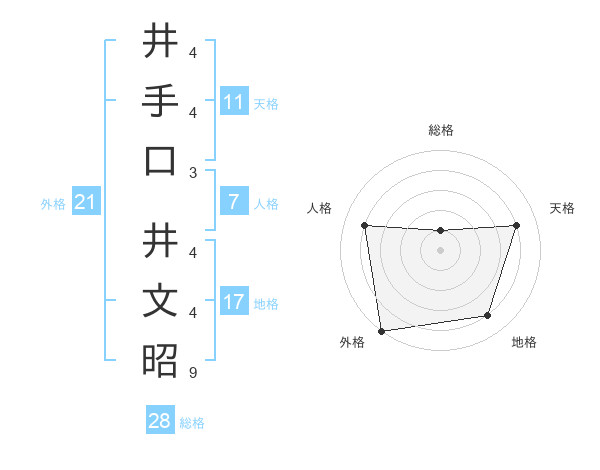 井手口 井文昭さんを姓名の画数から五運を鑑定