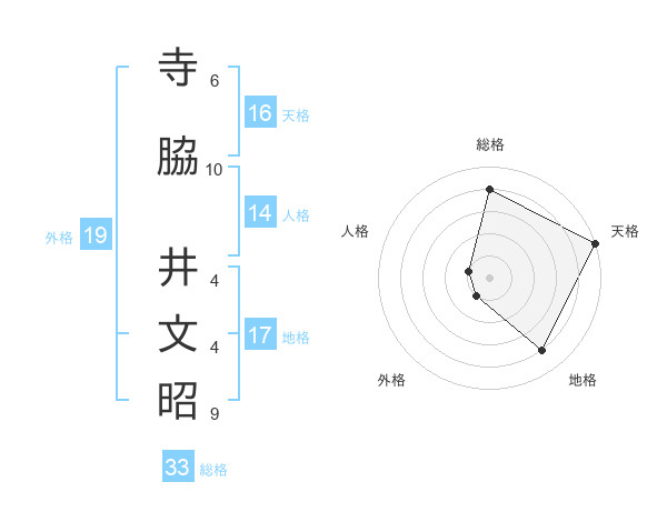 寺脇 井文昭さんを姓名の画数から五運を鑑定