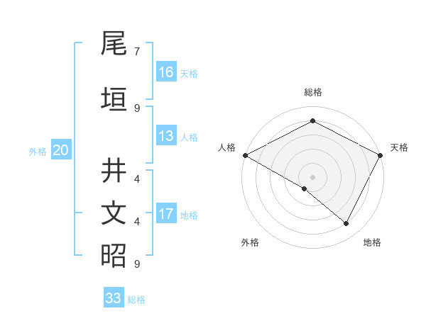 尾垣 井文昭さんを姓名の画数から五運を鑑定