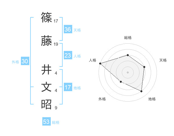 篠藤 井文昭さんを姓名の画数から五運を鑑定