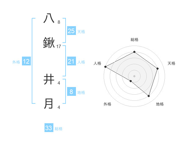八鍬 井月さんの地格は8画の4点!