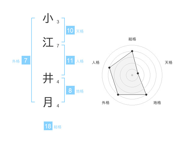 小江 井月さんの外格は7画の4点!