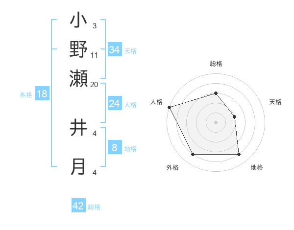 小野瀬 井月さんを姓名の画数から五運を鑑定
