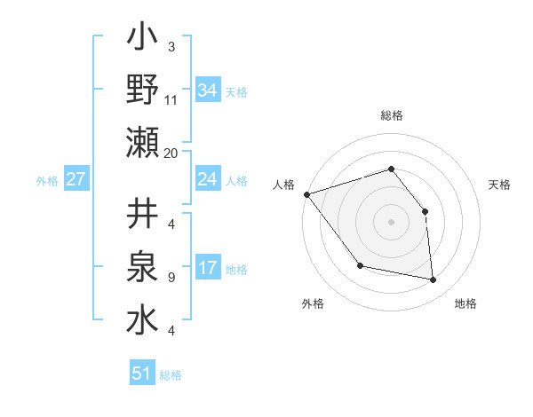 小野瀬 井泉水さんの総格は51画の3点