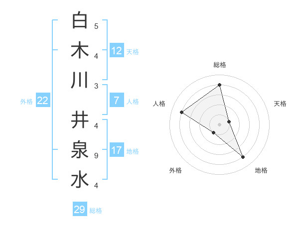 白木川 井泉水さんを姓名の画数から五運を鑑定