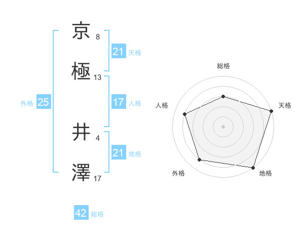 京極 井澤さんの地格は21画の5点!