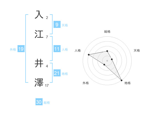 入江 井澤さんの総格は30画の2点!