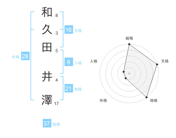 和久田 井澤さんの総格は37画の5点!