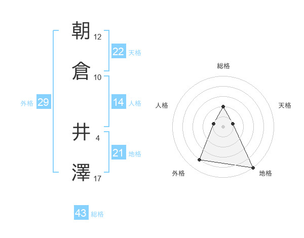 朝倉 井澤さんを姓名の画数から五運を鑑定