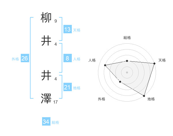 柳井 井澤さんを姓名の画数から五運を鑑定