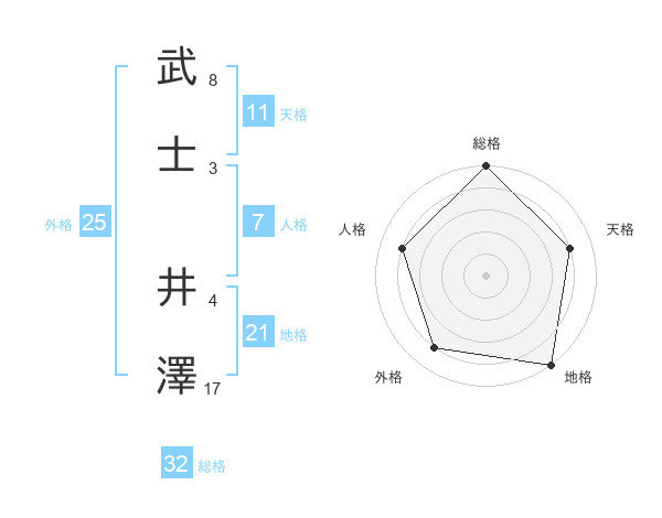 武士 井澤さんの総格は32画の5点!