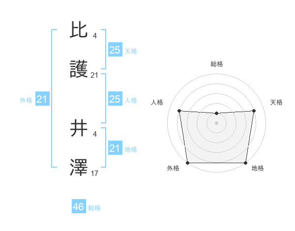 比護 井澤さんの天格は25画の4点!