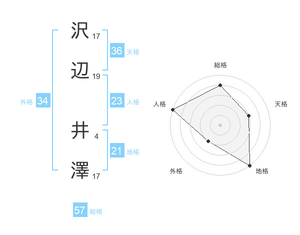 沢辺 井澤さんの地格は21画の5点!