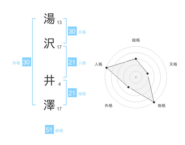 湯沢 井澤さんの地格は21画の5点!