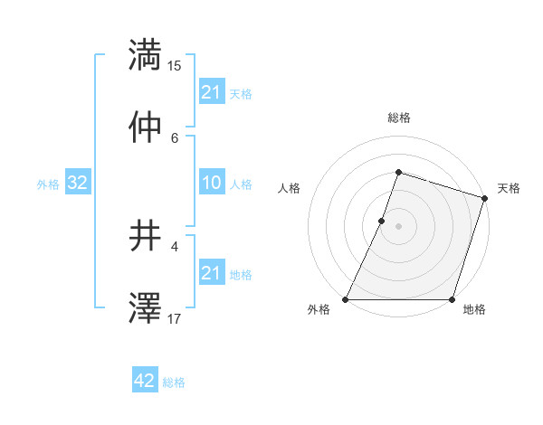 満仲 井澤さんの地格は21画の5点!