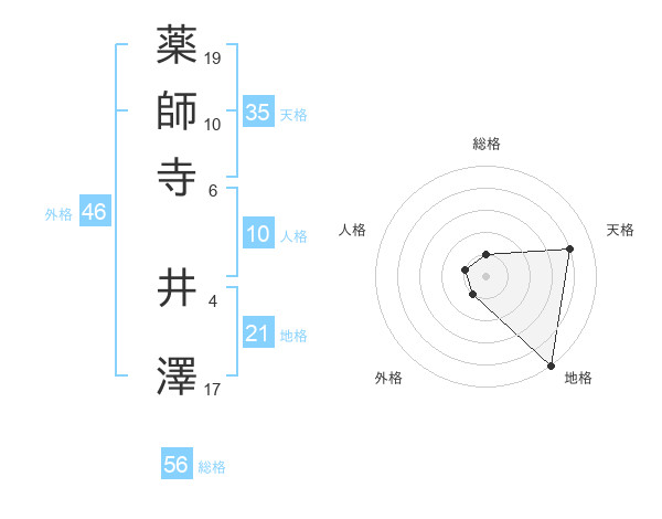 薬師寺 井澤さんの総格は56画の1点!