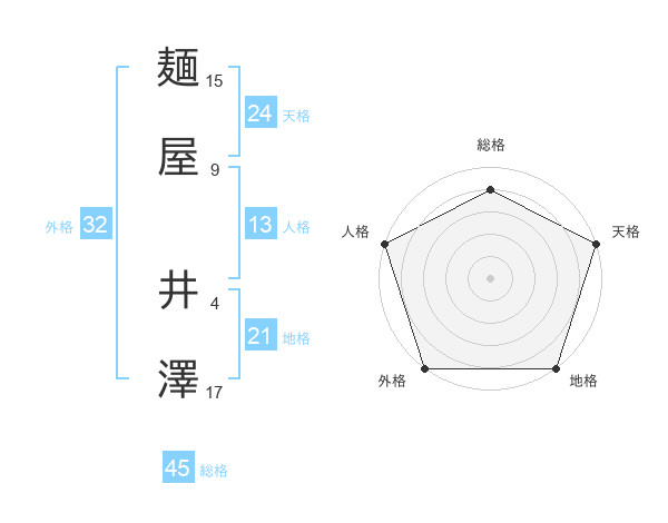 麺屋 井澤さんを姓名の画数から五運を鑑定
