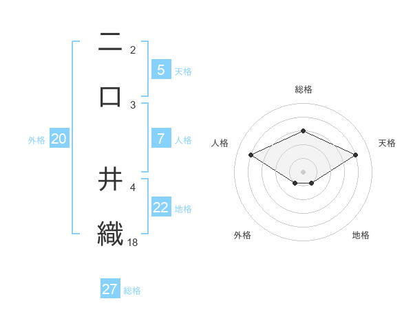 二口 井織さんを姓名の画数から五運を鑑定