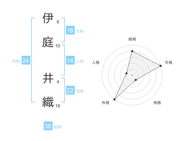 伊庭 井織さんの総格は38画の4点!