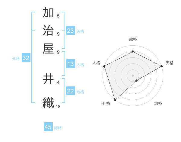 加治屋 井織さんの天格は23画の5点!