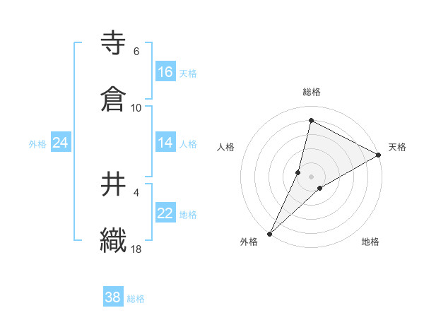 寺倉 井織さんの天格は16画の5点!