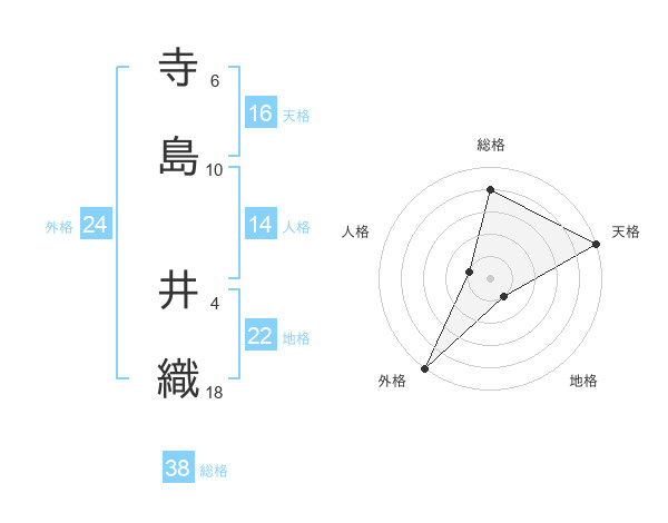 寺島 井織さんの天格は16画の5点!