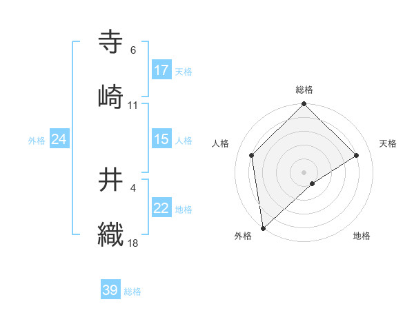 寺崎 井織さんの総格は39画の5点!