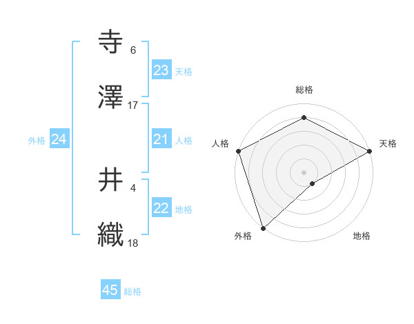 寺澤 井織さんの外格は24画の5点!