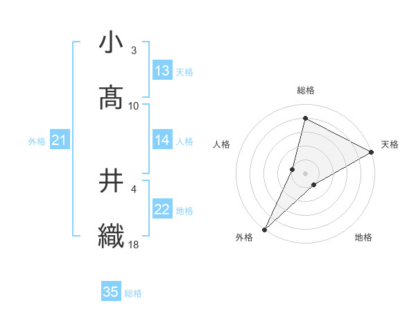小髙 井織さんの総格は35画の4点!