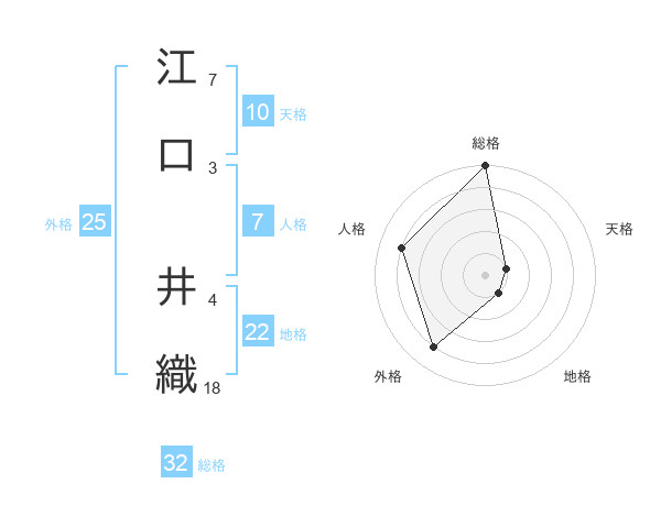 江口 井織さんの総格は32画の5点!