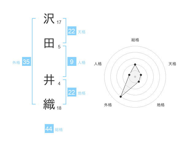沢田 井織さんの天格は22画の1点!