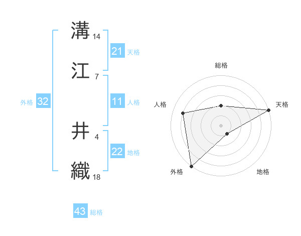 溝江 井織さんの天格は21画の5点!