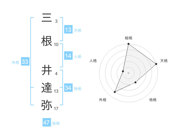 三根 井達弥さんを姓名の画数から五運を鑑定