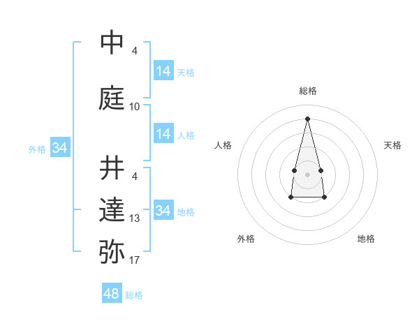 中庭 井達弥さんの総格は48画の4点!