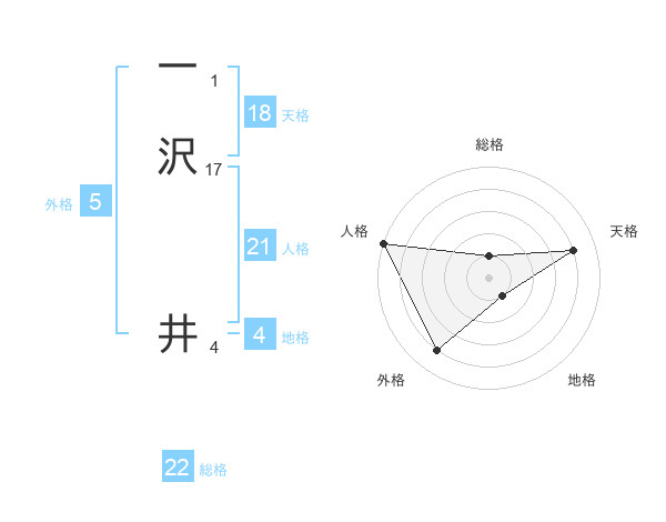 一沢 井さんの総格は22画の1点