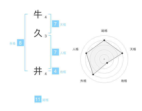 牛久 井さんの総格は11画の4点!