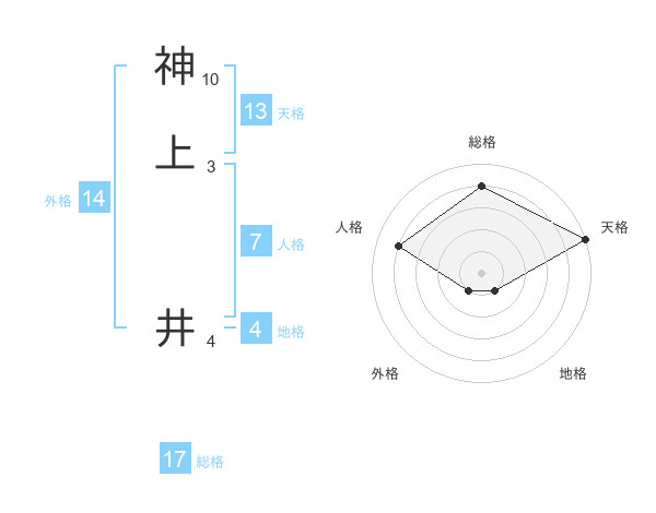 神上 井さんの総格は17画の4点!