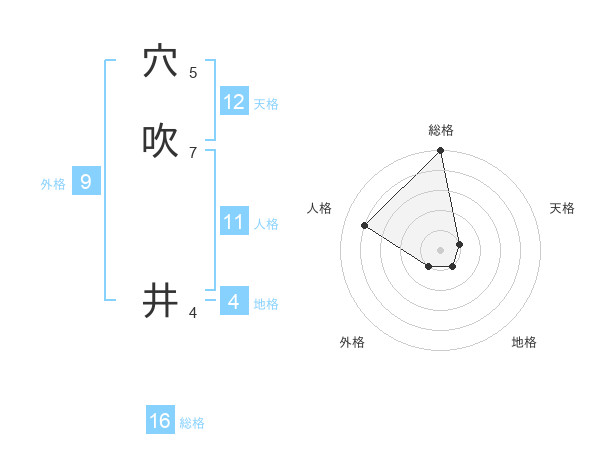 穴吹 井さんの総格は16画の5点!
