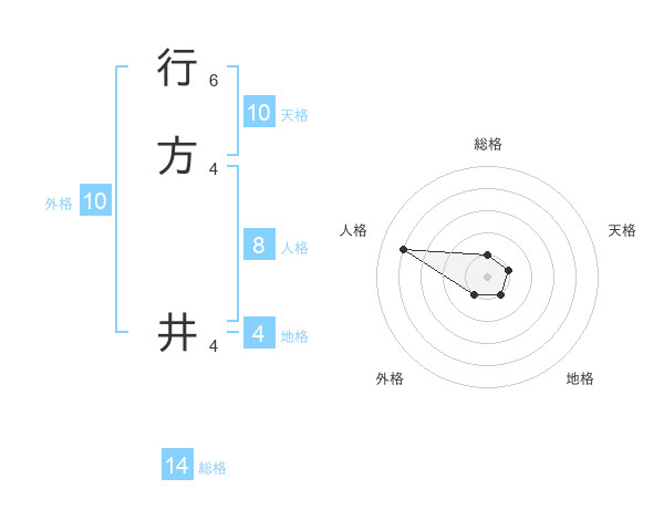 行方 井さんの総格は14画の1点!