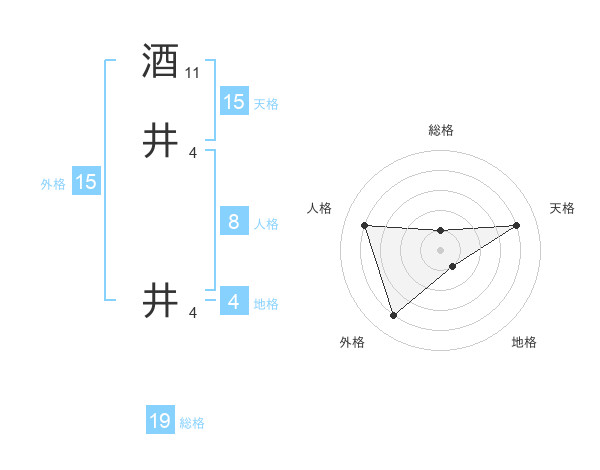 酒井 井さんの総格は19画の1点